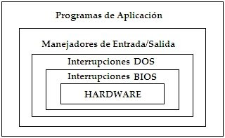 El esquema siguiente presenta un modelo esquemático de la posición que ocupa el sistema operativo con relación al hardware y a los programas de aplicación. Del esquema se desprende que el sistema operativo está conformado por tres capas.